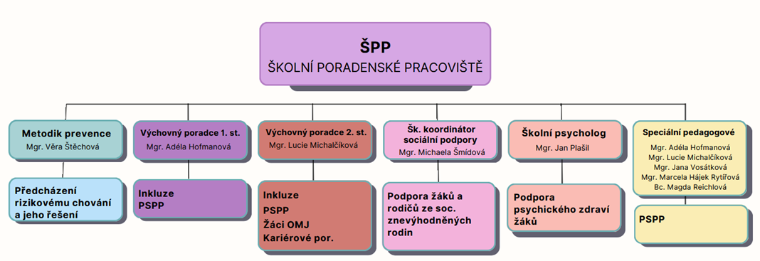 - Spolupracuje se školskými poradenskými zařízeními (pedagogicko-psychologickou poradnou, speciálně pedagogickým centrem) při zajišťování poradenských služeb přesahujících kompetence školy.